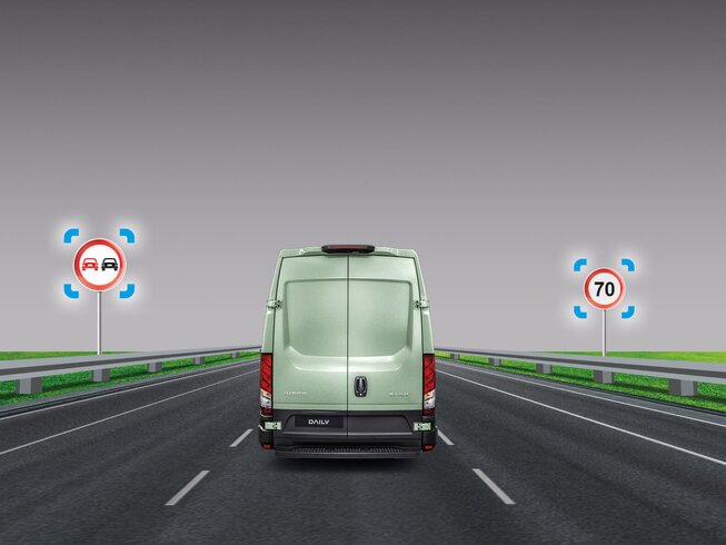 Der Daily passt die Geschwindigkeit an das vorausfahrende Fahrzeug an und hält den von Ihnen gewählten Abstand, bis Sie Ihre Reisegeschwindigkeit erreichen. Wenn das Fahrzeug vor Ihnen anhält, bremst auch der Daily ab. Und wenn es weg fährt, genügt eine kurze Berührung des Gaspedals, um den Tempomat mit Stop & Go zu reaktivieren.